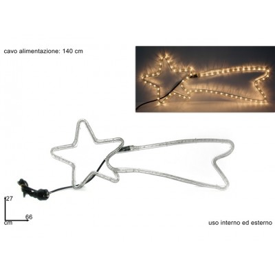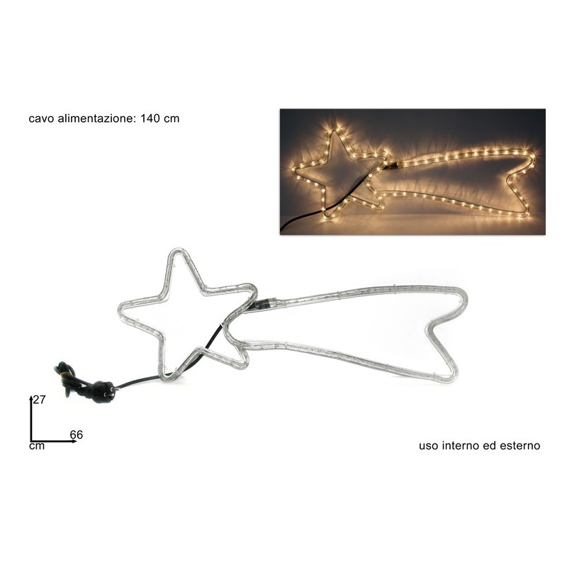 Cometa luminosa bianca calda lucw fissa per interno ed esterno, dimensioni 66x27 cm, con tubo luminoso 220V e cavo da 140 cm.