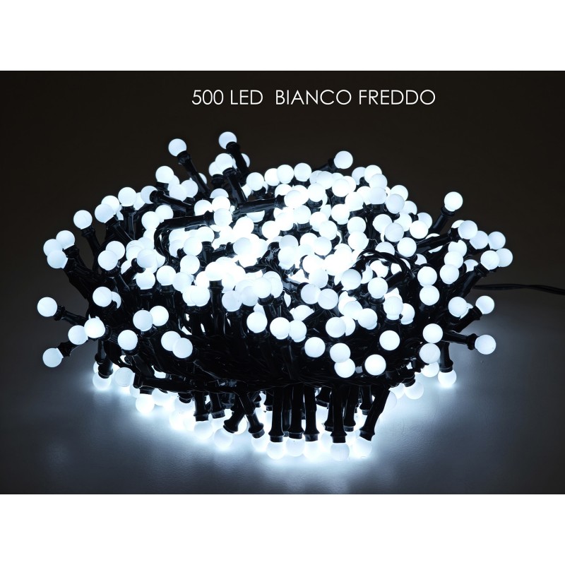 Con 500 LED a luce Bianco freddo, distribuiti su una catena di 12,5 metri più 4 metri di cavo di alimentazione,garantisce un effetto luminoso uniforme, elegante e di grande impatto visivo.