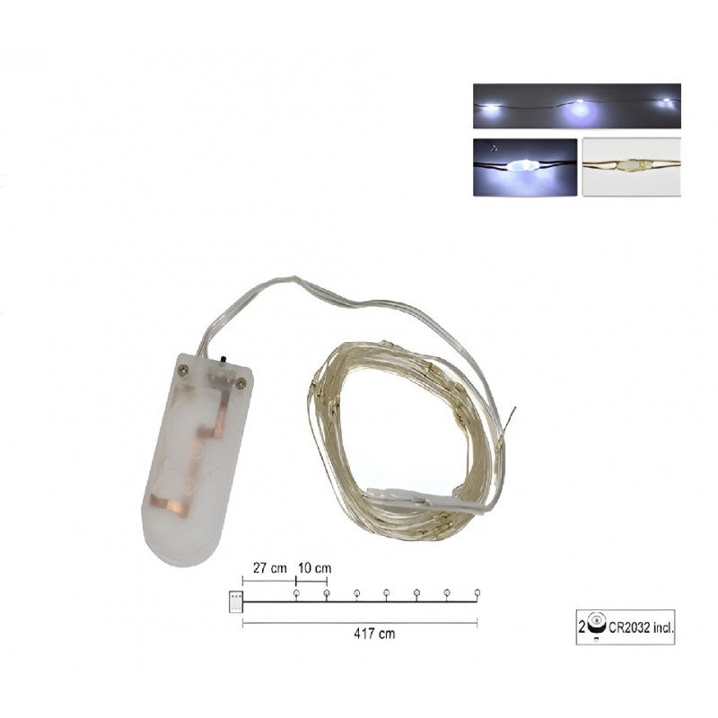 Stringa composta da 40 LED ultrasottili con diametro micro, distribuiti su filo nudo invisibile