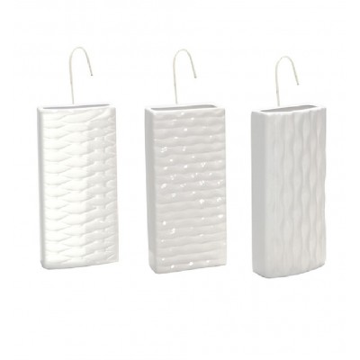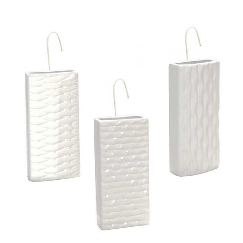 COSEDACASA Vi propone un pratico e naturale set di 3 evaporatori/umidificatori per termosifoni in coccio bianco lavorati , completi di gancetti metallici per un facile fissaggio ai radiatori.
