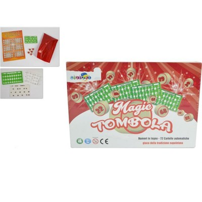 Pulizia: Per mantenere la Tombola in ottime condizioni, pulire le cartelle in plastica e i numeri in legno con un panno leggermente umido se necessario. Evitare l'uso di detergenti aggressivi. Asciugare bene prima di riporre.