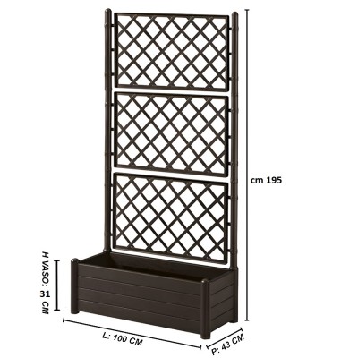 Fioriera da esterni con vaso rettangolare 100x43 cm e spalliera graticola 195 cm