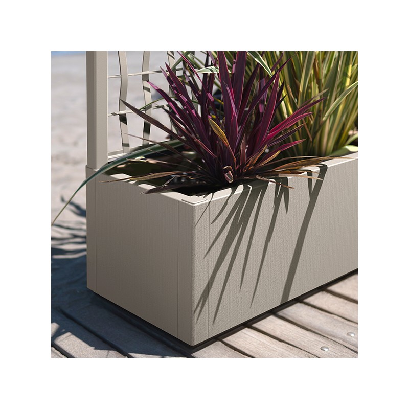 Ideale per creare soluzioni verdi modulari, perfette per hotel, bar, ristoranti, giardini e terrazzi. Esteticamente gradevole e versatile: la graticola arrampicante favorisce piante rampicanti e fioriture ornamentali, offrendo un efficace schermo di privacy. Facile da assemblare, zero manutenzione, resistente agli agenti atmosferici.