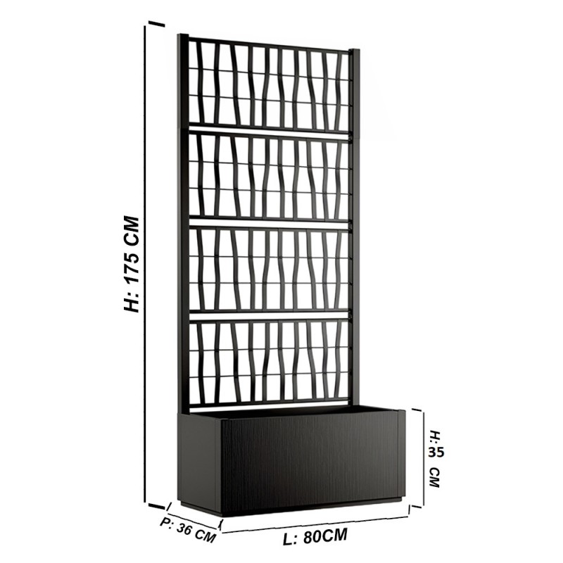Ideale per creare soluzioni verdi modulari, perfette per hotel, bar, ristoranti, giardini e terrazzi. Esteticamente gradevole e versatile: la graticola arrampicante favorisce piante rampicanti e fioriture ornamentali, offrendo un efficace schermo di privacy. Facile da assemblare, zero manutenzione, resistente agli agenti atmosferici.