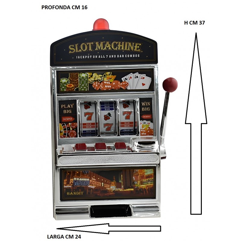 Design elegante che richiama le classiche slot machine da bar, con leva laterale, display illustrativo e pulsanti slot. Ideale come idea regalo, oggetto da esposizione, complemento per arredamento vintage o per giochi casalinghi.