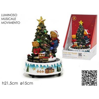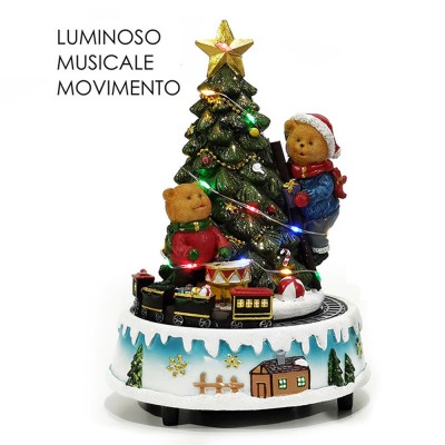 COSEDACASA Vi propone una raffinata giostra carillon natalizia, un oggetto decorativo che unisce musica, luci e movimento per portare magia e atmosfera in ogni ambiente. Questo villaggio natalizio in miniatura è composto da un suggestivo albero di Natale con stella dorata, orsetti, un trenino in movimento e una base decorata in stile classico.
