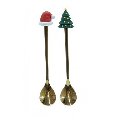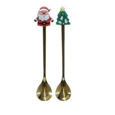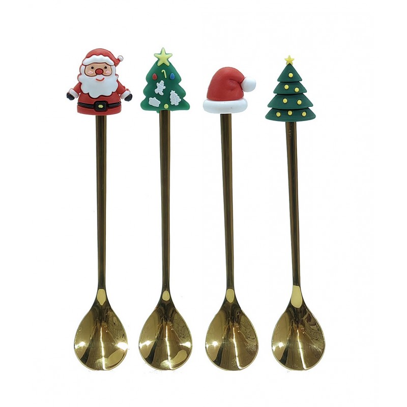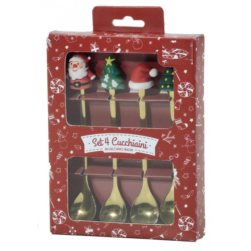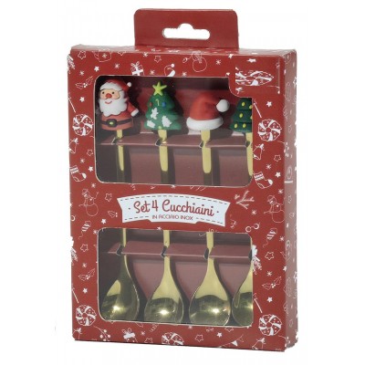 Set 4 cucchiaini da caffè natalizi in acciaio inox color oro