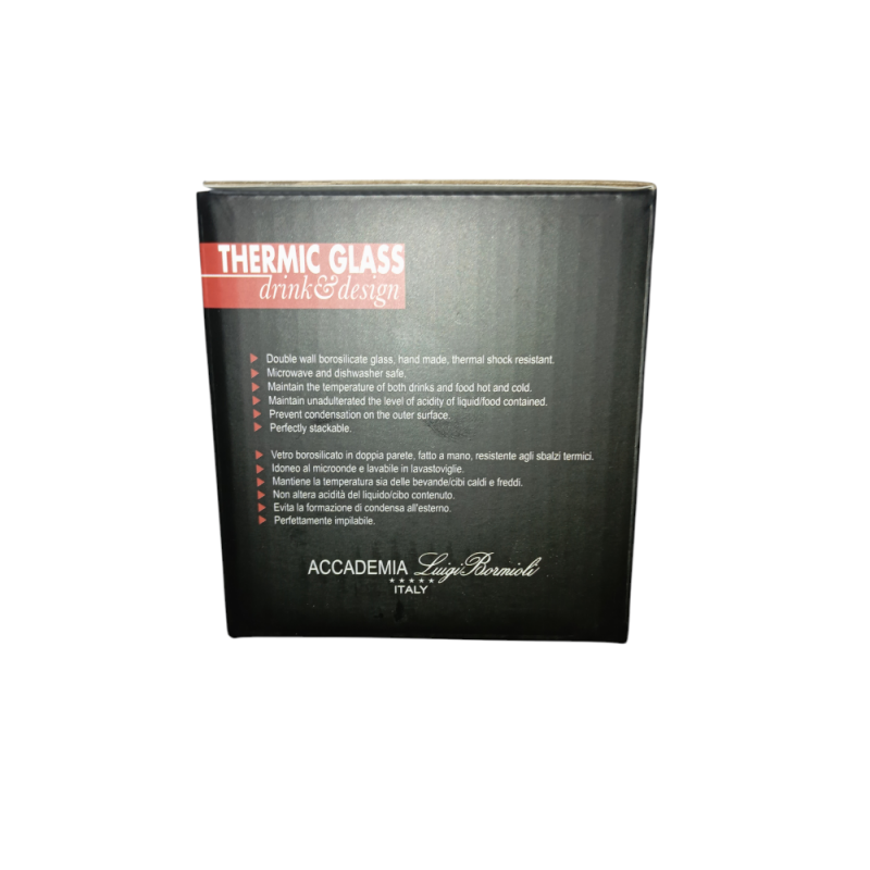 Il vetro borosilicato è noto per la sua capacità di resistere a temperature estreme senza incrinarsi. La doppia parete crea un'intercapedine isolante che agisce come una barriera termica: il calore rimane all'interno, mentre l'esterno del bicchiere resta piacevole al tatto, eliminando la necessità di manici. Inoltre, questa tecnologia impedisce l'alterazione dell'acidità del liquido contenuto, preservando il gusto autentico delle vostre bevande.
