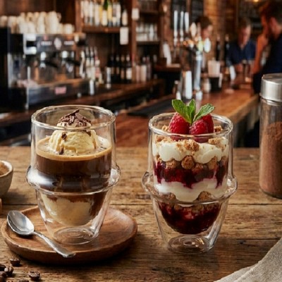 Versatilità d uso eccellente per servire non solo bevande calde ma anche dessert e gelati con uno stile professionale da bar.