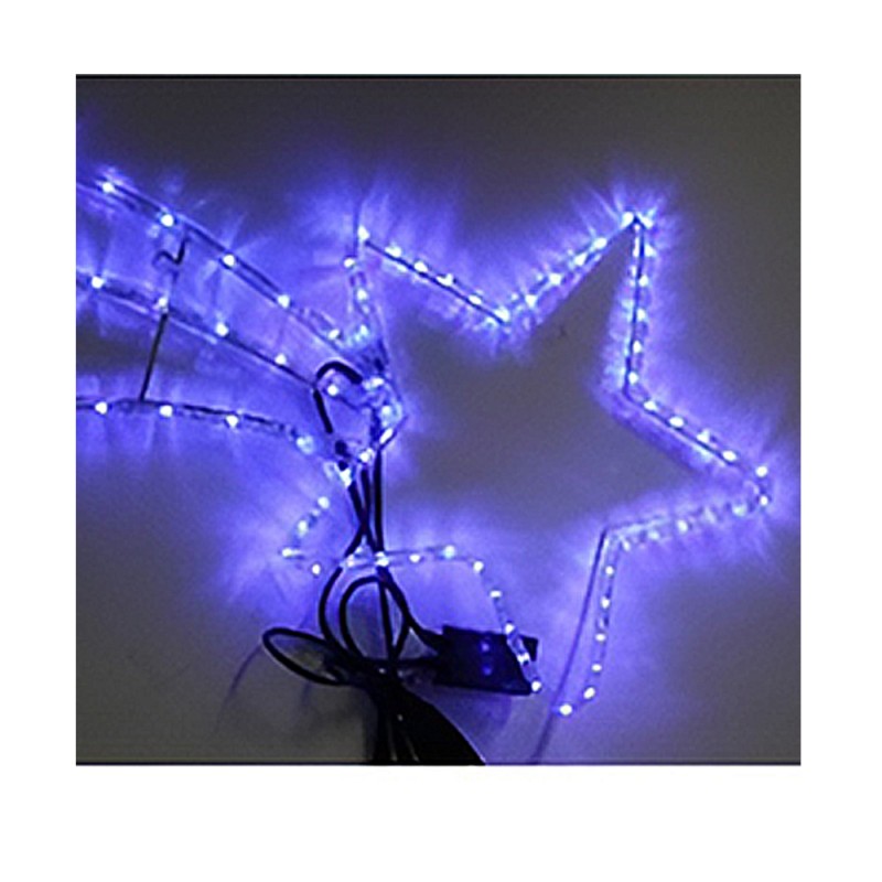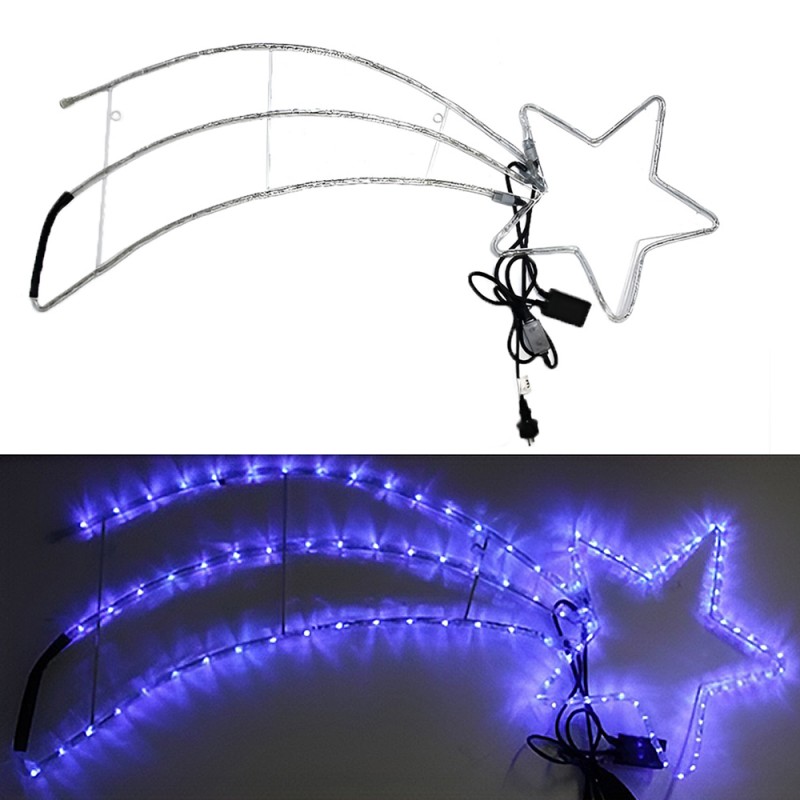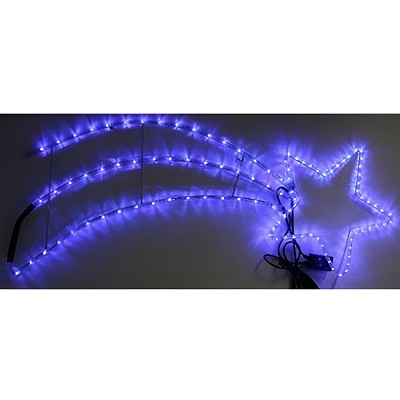 Illuminazione natalizia a forma di stella cometa, alta 30 cm e lunga 66 cm circa, con 48 luci LED BLU 7 luci lampeggianti per un effetto unico. Cavo di alimentazione di 150 cm. Corrente 220/240 V - 50 Hz, potenza 3,6 watt, IP44 per uso interno ed esterno. Se ordinato entro le 13:00, spediremo lo stesso giorno con codice tracking del corriere e consegna entro 48 ore (se il corriere non ha intoppi).