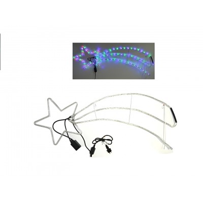 COSEDACASA Vi propone una splendida illuminazione natalizia a forma di stella cometa, alta 50 cm e lunga 125 cm, perfetta per decorare il vostro spazio interno ed esterno. Dotata di 180 luci LED multicolor , effetto luminoso unico e affascinante movimento scorrevole della coda.... Con un cavo di alimentazione lungo 150 cm, questo prodotto è facile da posizionare ovunque. Funziona con corrente 220/240 V - 50 Hz e ha una potenza di 7.2 watt. La certificazione IP44 garantisce resistenza agli agenti atmosferici, rendendola adatta per l’uso all'aperto.