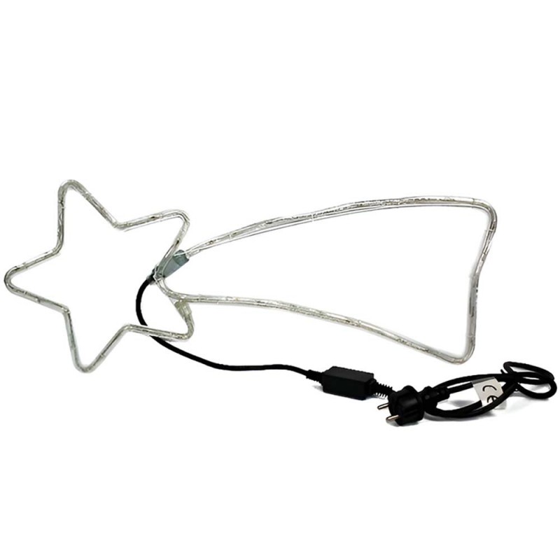 COSEDACASA Vi propone una splendida illuminazione natalizia a forma di stella cometa, alta 30 cm e lunga 66 cm circa, perfetta per decorare il vostro spazio interno ed esterno. Dotata di 48 luci LED BLU, di cui 7 lampeggiano creando un effetto luminoso unico e affascinante. Con un cavo di alimentazione lungo 150 cm, questo prodotto è facile da posizionare ovunque. Funziona con corrente 220/240 V - 50 Hz e ha una potenza di 3,6 watt. La certificazione IP44 garantisce resistenza agli agenti atmosferici, rendendola adatta per l’uso all'aperto.