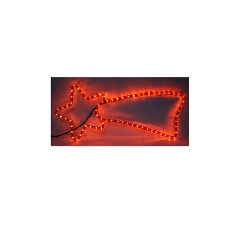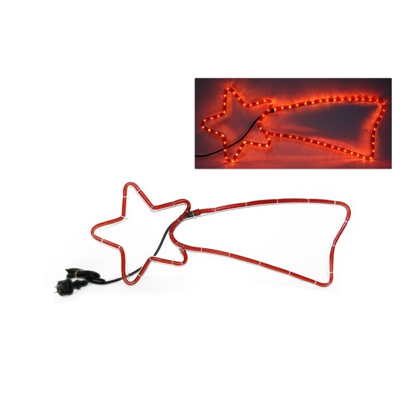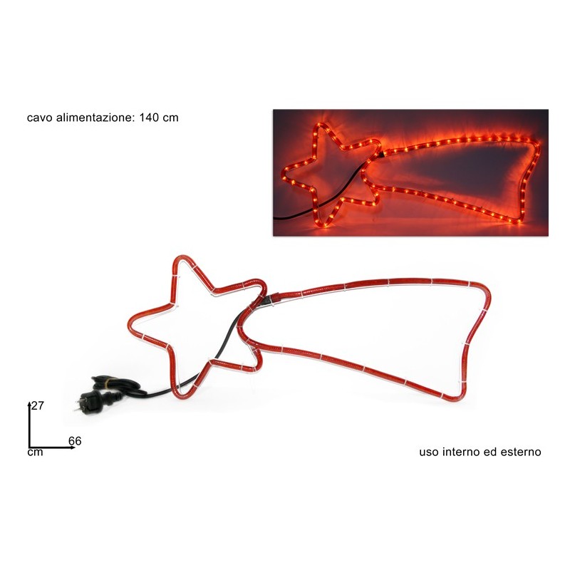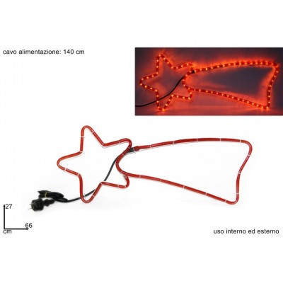 Cometa luminosa rossa luci fisse per interno ed esterno, dimensioni 66x27 cm, con tubo luminoso 220V e cavo da 140 cm.