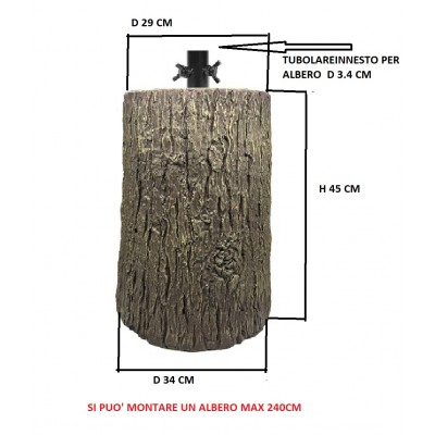 Piede per albero di Natale a forma di tronco realistico, altezza 45 cm, diametro BASE 34 cm. Supporta alberi artificiali fino a 240 cm. Realizzato in materiali di alta qualità, con un cilindro di 3,4 cm e tre viti per un montaggio sicuro. Se ordinato entro le 13:00, spediremo lo stesso giorno con codice tracking del corriere e consegna entro 48 ore (se il corriere non ha intoppi).