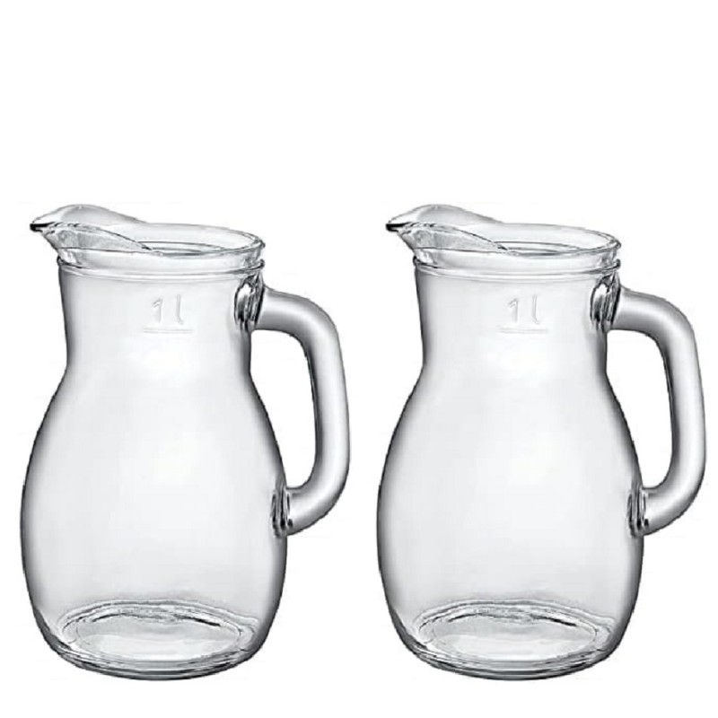 cosedacasa vi propone il set da 2 brocche Bistrot da 1 litro in vetro trasparente, eleganti e capienti, dotate di linea di taratura MID per un servizio preciso di acqua, vino e bevande. Ideali per casa e ristorazione.