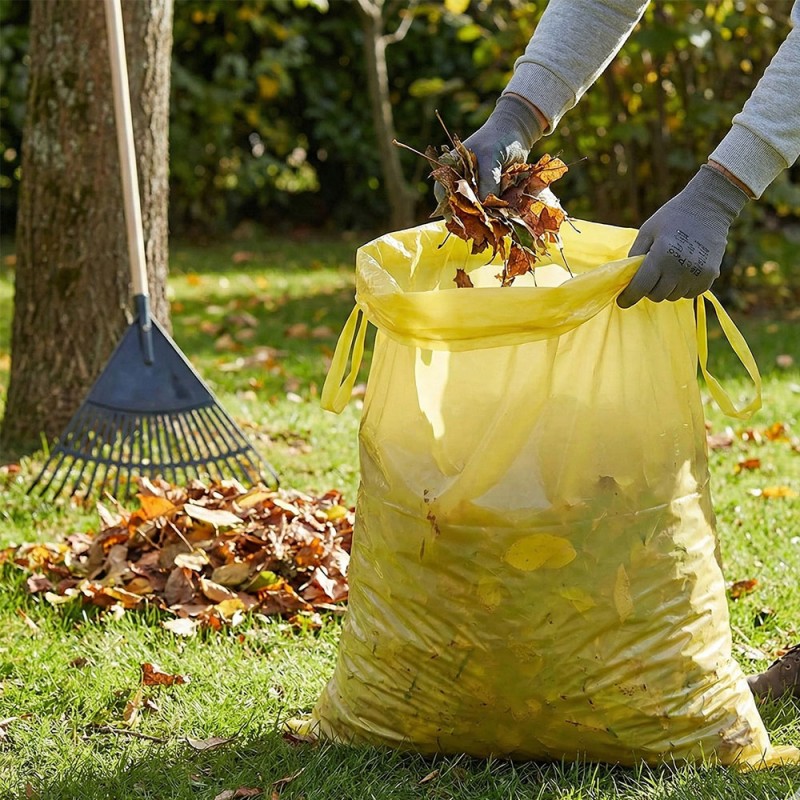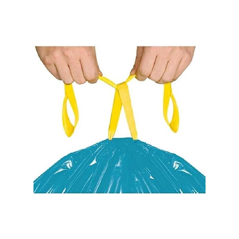Srotolare un sacco alla volta e inserirlo all'interno del bidone, avendo cura di rimboccare il bordo superiore per coprire il perimetro del contenitore. Per la chiusura, afferrare le maniglie gialle e tirare verso l'alto. Conservare la scorta in un luogo fresco e asciutto per mantenere inalterata la resistenza del polimero e l'intensità della profumazione nel tempo.