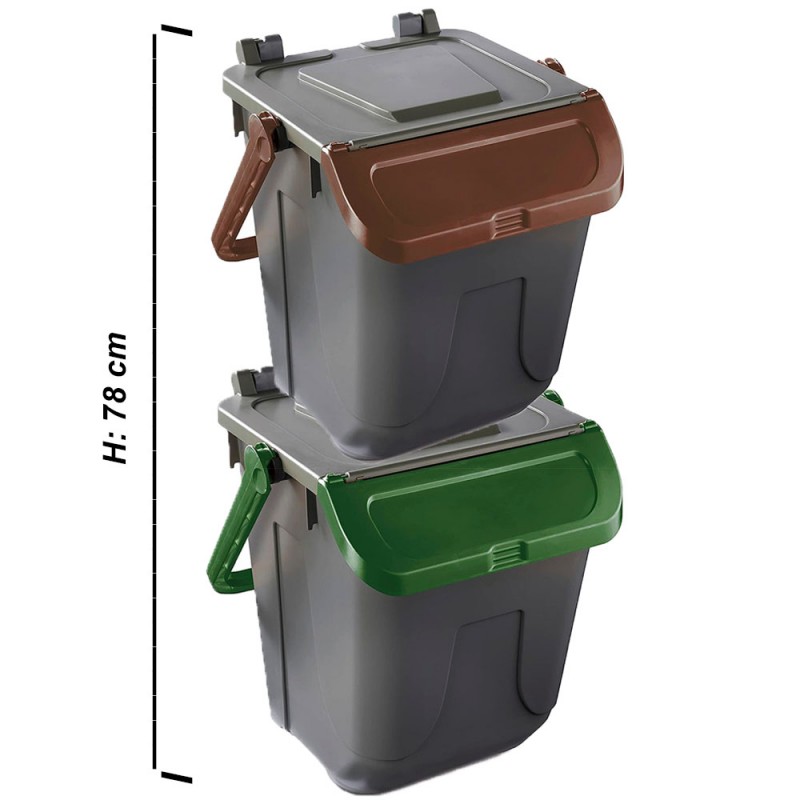Cosedacasa vi propone questo set di 2 bidoni per raccolta differenziata urbana e domestica da 25 litri cadauno, con base di colore grigio e coperchio verde e marrone contenitori bidoni per l'immondizia
