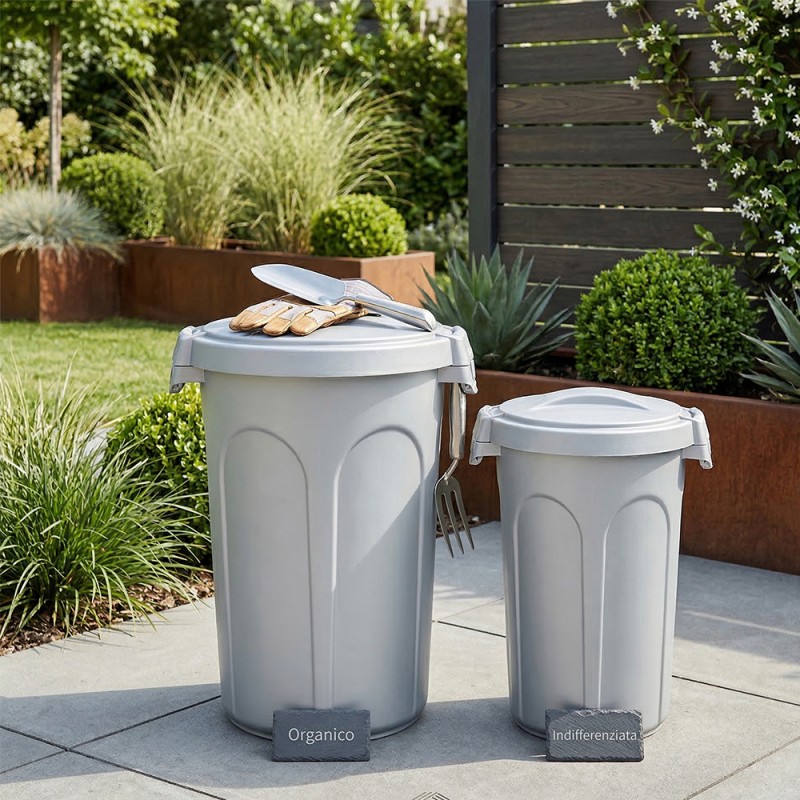 Bidone portarifiuti, capiente, pratico e maneggevole, può essere un valido aiuto anche in giardino.