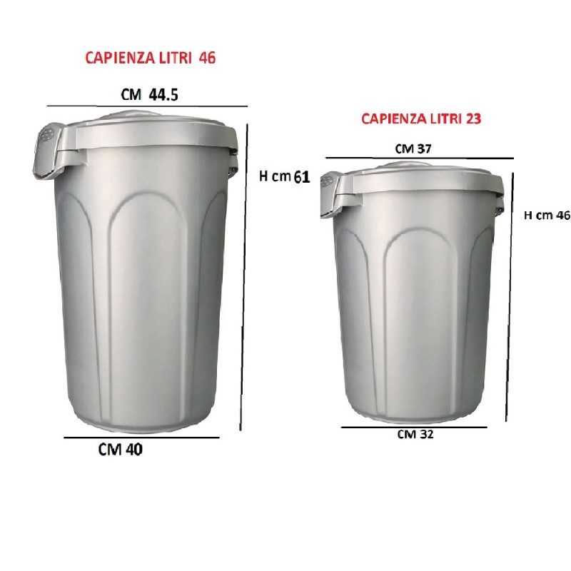 Altezza: 53 cm Diametro superiore: 45 cm Diametro inferiore: 35.2 cm Made in Italy Ideale per: Uso domestico, giardinaggio, ristorazione, raccolta differenziata
