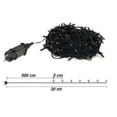 Lunghezza totale: 20 metri (15 m con luci + 5 m cavo alimentazione)
