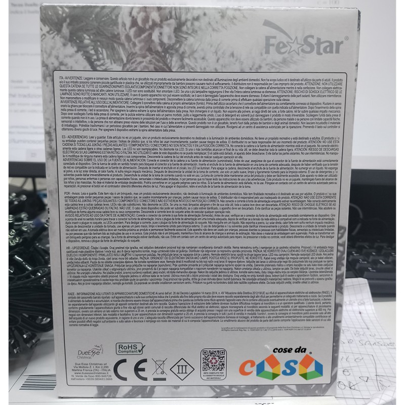 Queste luci LED non si scaldano, rendendole idonee anche vicino a materiali delicati come fogliame, tessuti, decorazioni. I LED sono durevoli: durano fino a 10 volte in più rispetto alle classiche luci e consumano fino al 90% in meno di elettricità. Il prodotto è certificato CE, ROHS, grado di protezione IP44 (resistente agli spruzzi), conforme alle normative europee. Prima della spedizione l’unità viene verificata: il pacco arriva perfettamente funzionante.