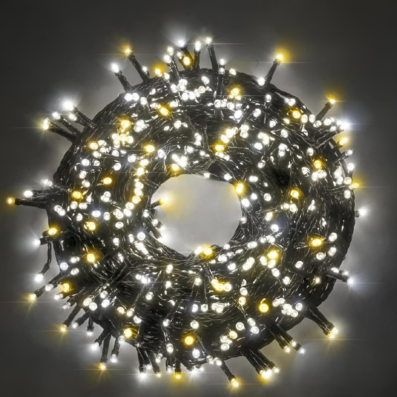 Una serie di 1200 luci LED minilucciole bianco freddo e caldo, perfette per le decorazioni natalizie, ma anche per feste, cerimonie ed eventi in ogni stagione. Un prodotto di qualità certificata, progettato per garantire un’illuminazione suggestiva, sicura e a basso consumo.