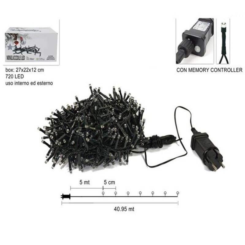 720 luci LED mini “lucciole” su 36 m + 5 m cavo alimentazione