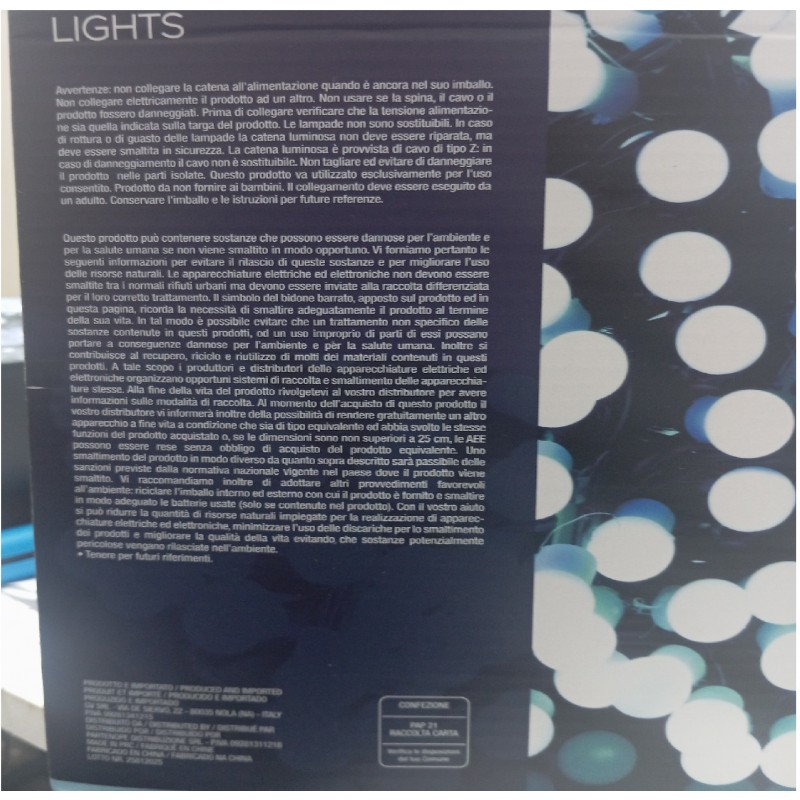 Specifica:500 micro ledcolore disponibilemulticolorebianco freddobianco caldorosa 8 giochi di luceip 44 12 v non prolungabiliinterno ed esternolunghezza 37,5 di cui 3 metri di filo per arrivare alla presa