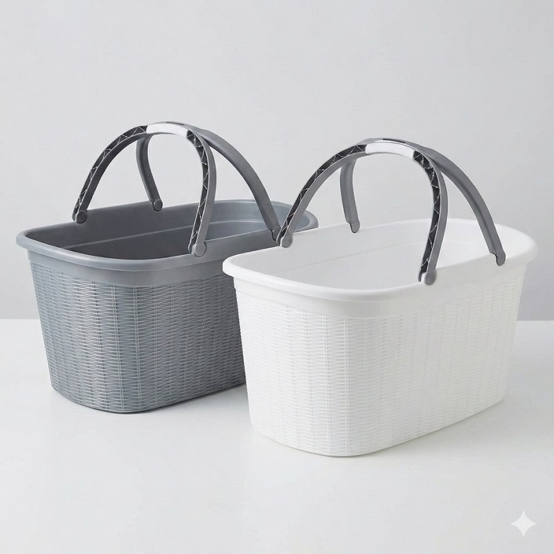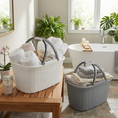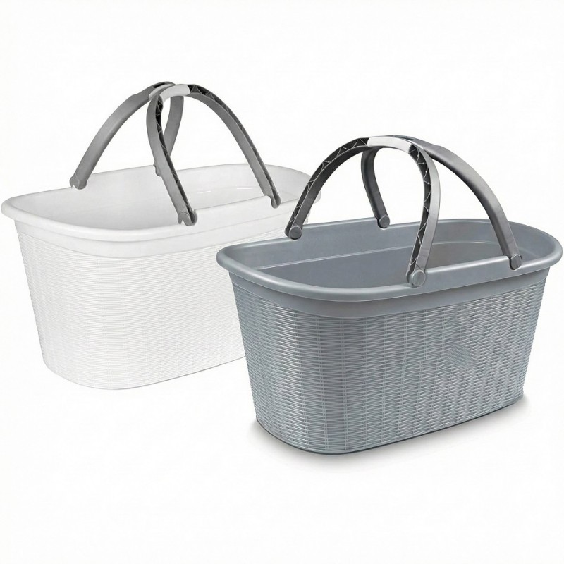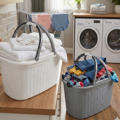 Il comfort è garantito dalle maniglie laterali dotate di un inserto in gomma soft touch. Questo dettaglio tecnico previene l'affaticamento delle mani durante il trasporto di carichi pesanti e assicura una presa salda anche con le mani umide. Oltre all'uso domestico per la biancheria, la loro robustezza le rende adatte anche come contenitori multiuso in ufficio o nei ripostigli.