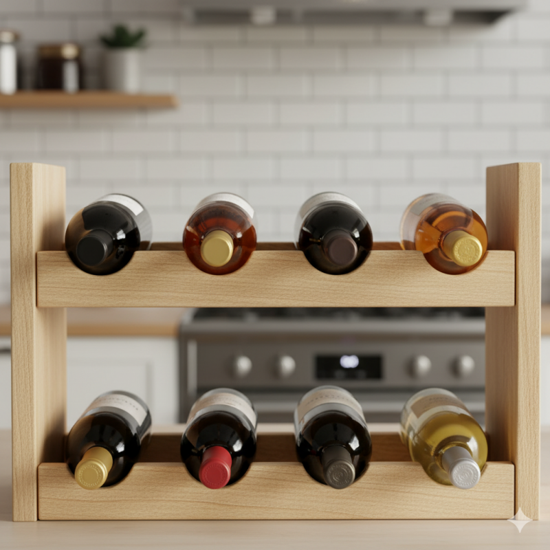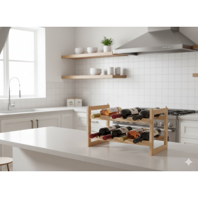 Materiale e Conservazione Ottimale: Realizzata in legno chiaro, offre stabilità e un tocco di eleganza rustica. Mantiene le bottiglie in posizione orizzontale, essenziale per mantenere i tappi umidi e preservare la qualità del vino.
