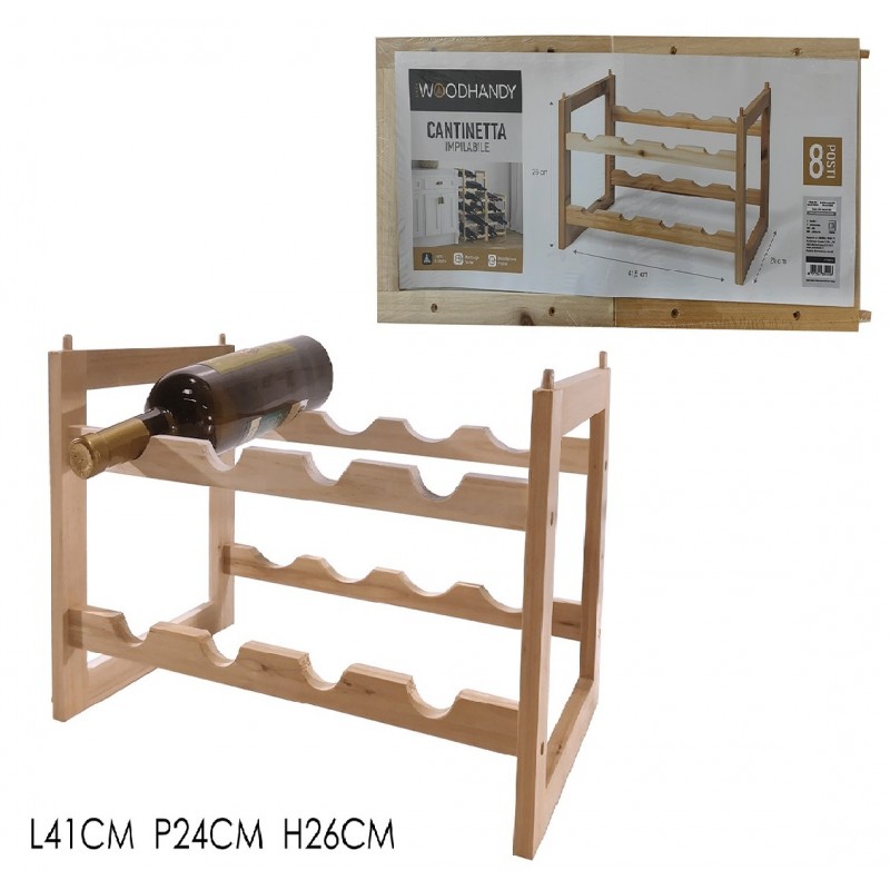 Cantinetta Portabottiglie in Legno 8 Posti Impilabile Modulare WOODHANDY