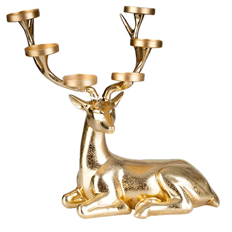 COSEDACASA Vi propone la Renna Seduta in Resina con 6 Braccia per Candele, un Candelabro Elegante in Oro, perfetto per decorare la vostra casa con un tocco di lusso.