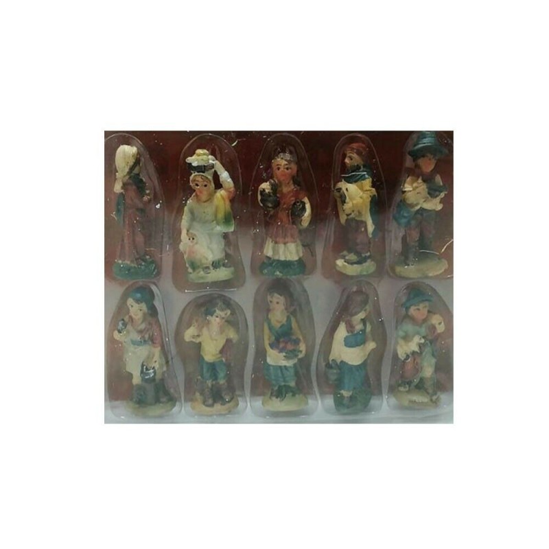 Set composto da 10 pastorelli assortiti in plastica colorata, ideali per completare presepi di piccole dimensioni.