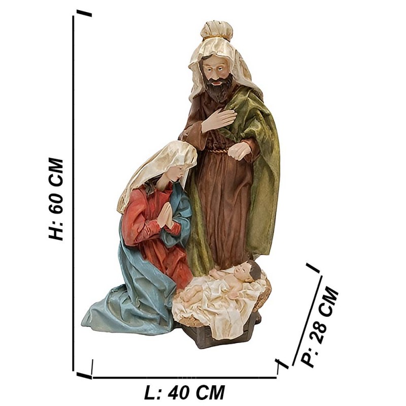 Le statue, con un’altezza massima di 55 cm, sono realizzate con cura e attenzione ai dettagli. Il design, ispirato allo stile juta, conferisce alle figure un aspetto rustico ma elegante, ideale per creare una scena di grande impatto visivo e spirituale.