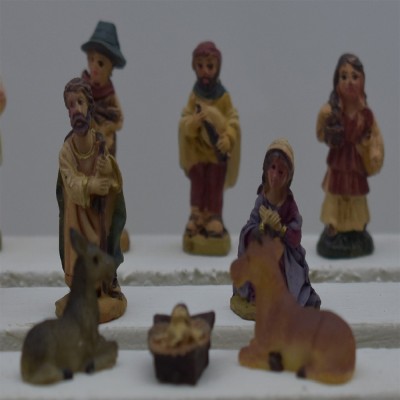 Personaggi inclusi: Maria, Giuseppe, Gesù Bambino, bue, asinello