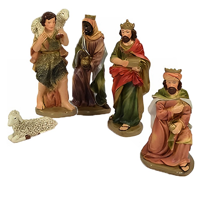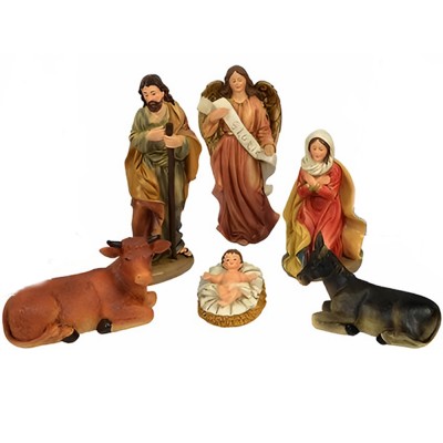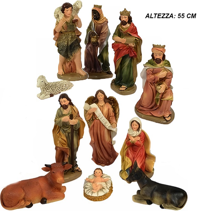 Natività completa in poliresina colorata , composta da 11 pezzi: