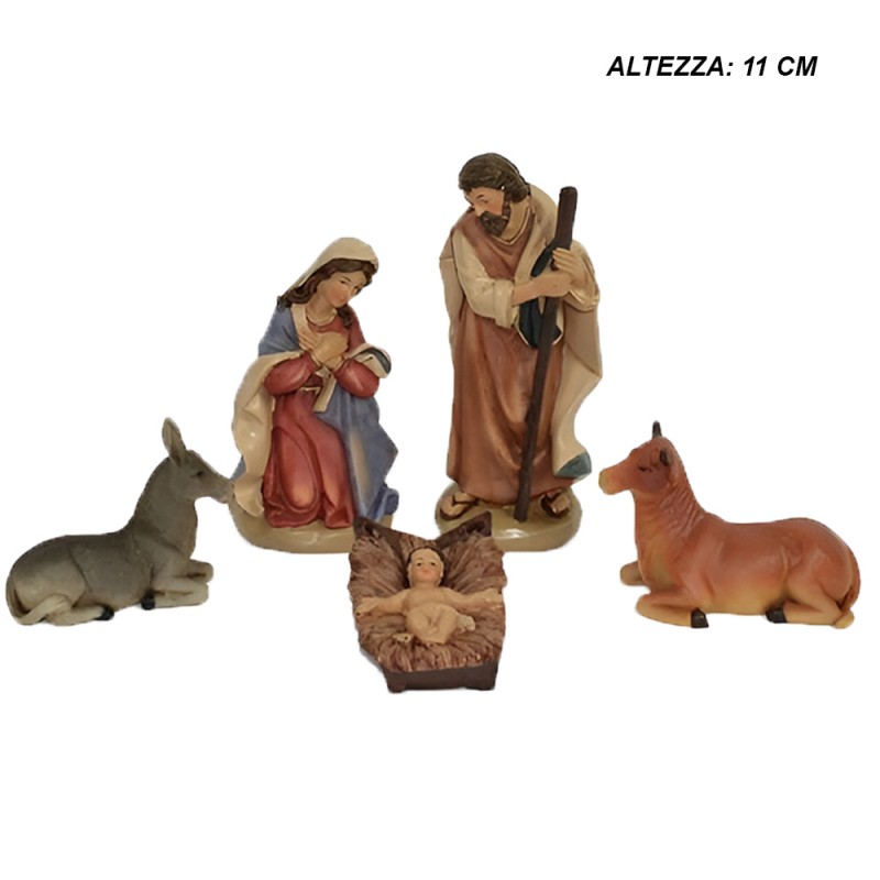 COSEDACASA Vi propone un'elegante e completa Natività da 5 pezzi in poliresina colorata , ideale per arricchire con calore e spiritualità le vostre decorazioni natalizie.