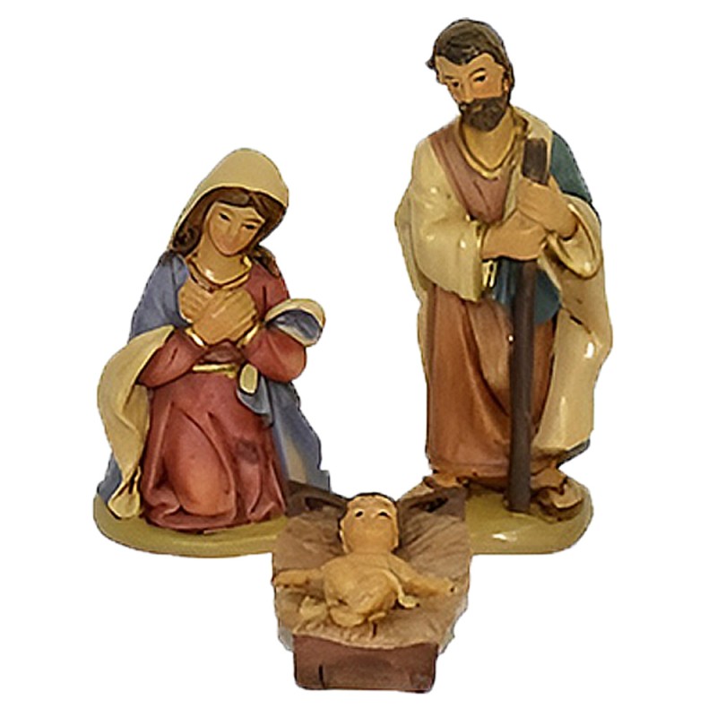 Marca: cosedacasaDimensioni: h11 cm Materiale: resina 4 pezzi in un unico blocco composta da san giuseppe, maria, il bambinello
