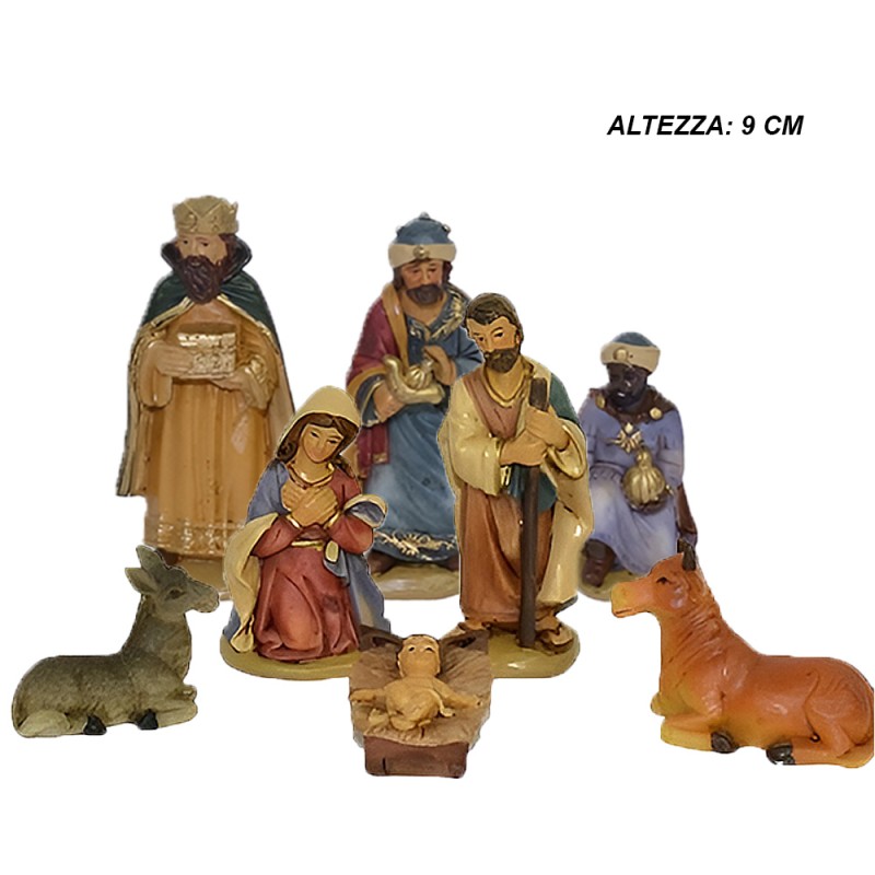 COSEDACASA Vi propone un'elegante e completa Natività da 8 pezzi in poliresina colorata, ideale per arricchire con calore e spiritualità le vostre decorazioni natalizie.