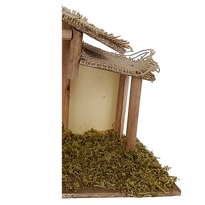 Questa capanna è un ottimo complemento per statuine della Natività di medie dimensioni ed è ideale per presepi da tavolo, da salotto o ambientazioni scolastiche e religiose. Si adatta a stili sia classici che più moderni grazie al suo aspetto artigianale ma sobrio.