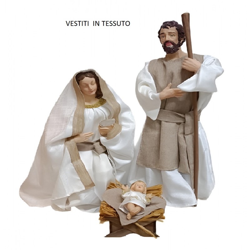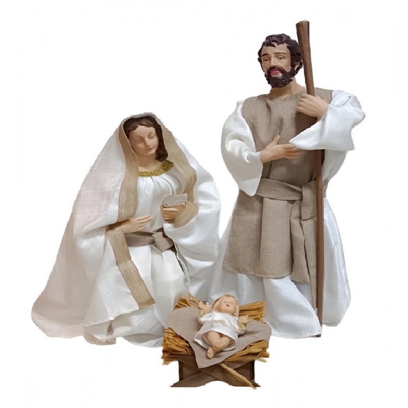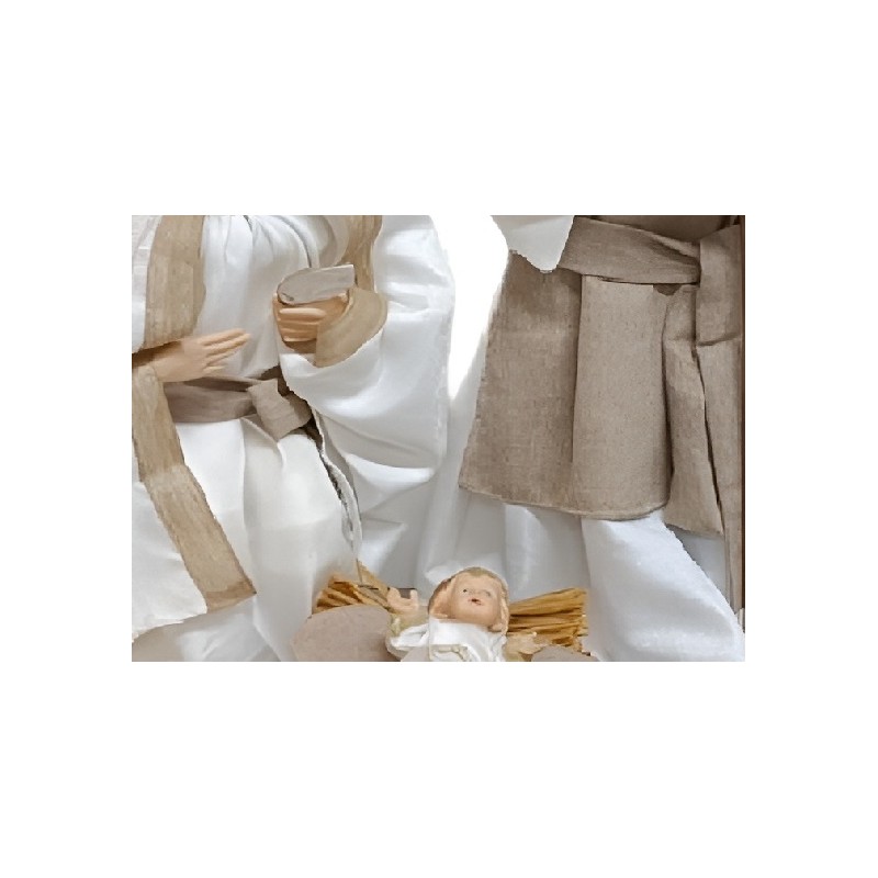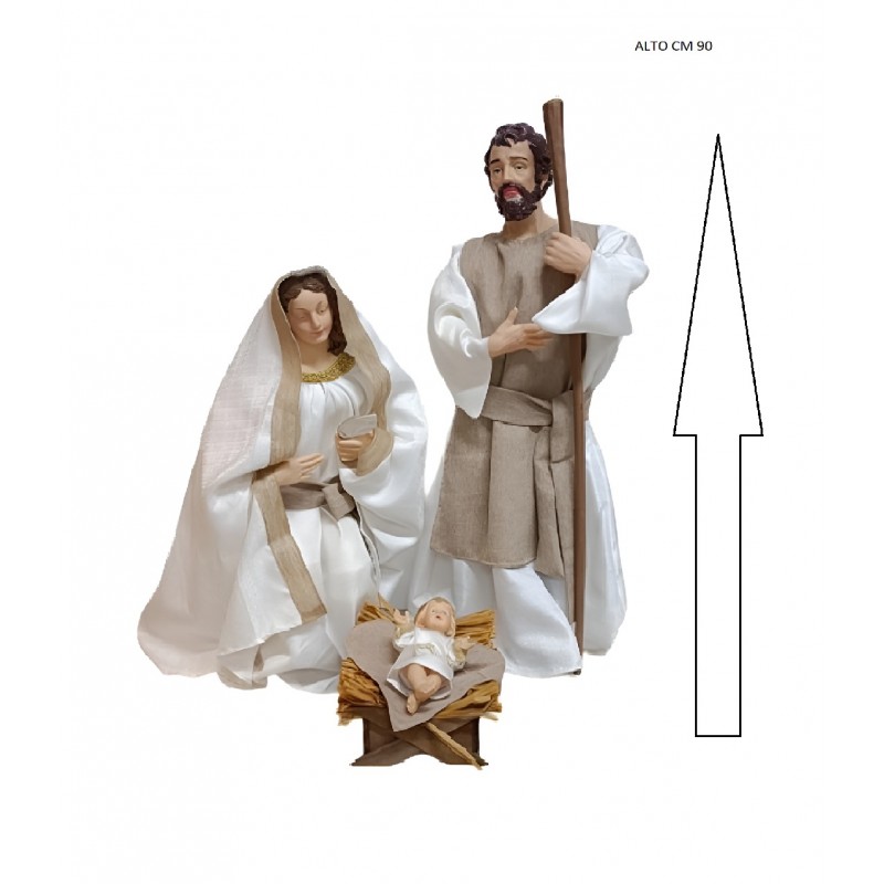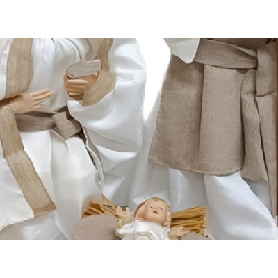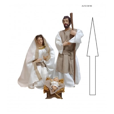 COSEDACASA vi propone un’incantevole Natività a 3 personaggi: Maria, Giuseppe e il Bambinello Gesù adagiato nella sua culla con paglia, realizzati in tessuto di alta qualità, con altezza massima di 90 cm.