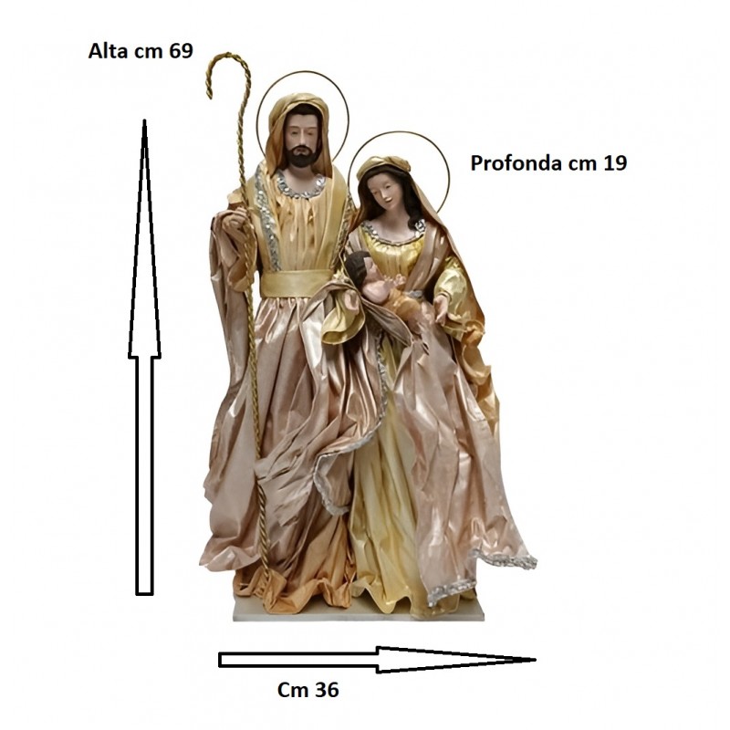 COSEDACASA vi propone un’incantevole Natività a 3 personaggi: Maria, Giuseppe e il Bambinello Gesù in blocco, realizzati in tessuto di alta qualità, con altezza massima di 69 cm.