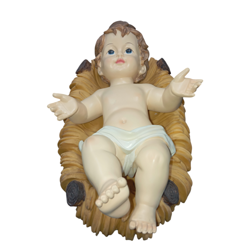 COSEDACASA vi propone una splendida rappresentazione del Gesù Bambino con Culla Betlem, una statuina natalizia di alta qualità, realizzata con cura e attenzione ai dettagli per ricreare la magia e la spiritualità del Natale.
