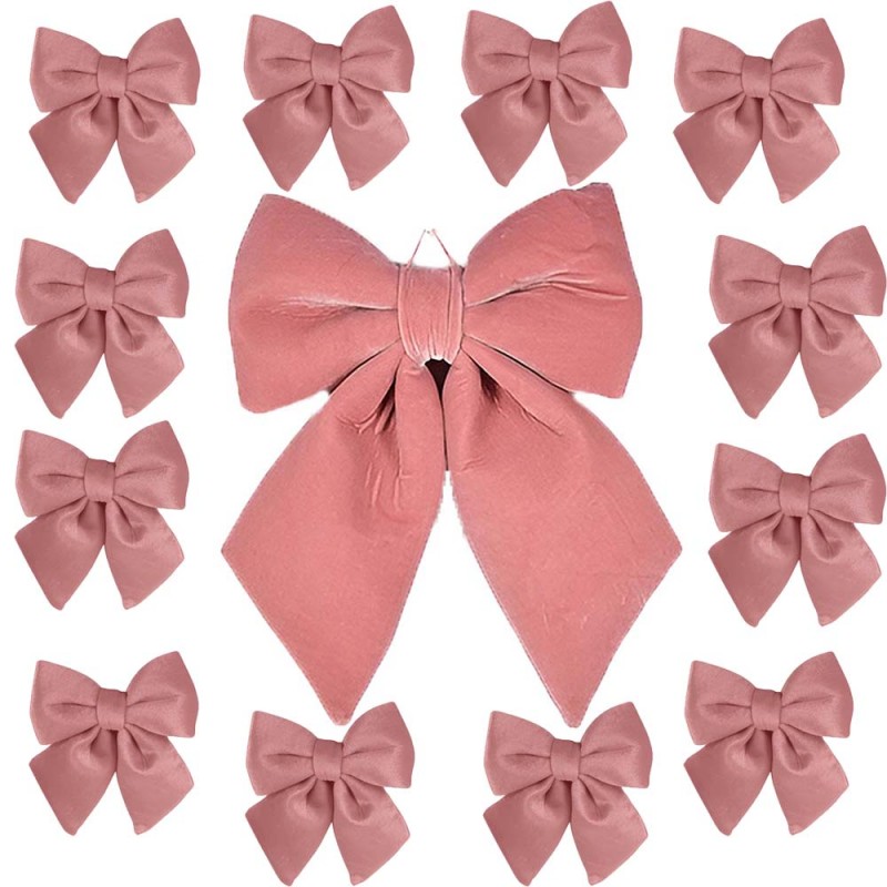 Elegante set natalizio composto da 13 fiocchi rosa in velluto, ideale per decorare alberi di Natale, pareti, porte, finestre, pacchi regalo, camini e vetrine.