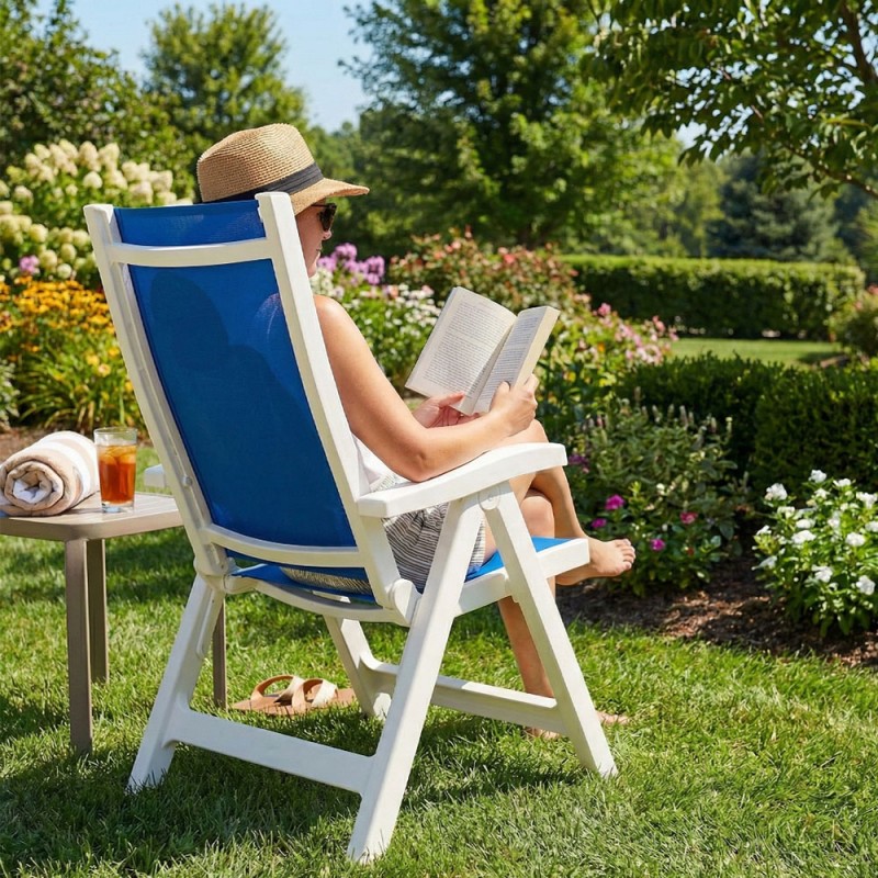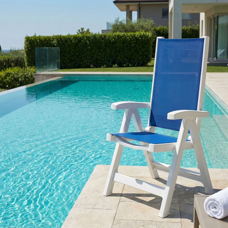 Grazie alla sua struttura pieghevole, la poltrona può essere riposta con il minimo ingombro durante i mesi invernali o trasportata con facilità. Il design pulito e i colori vivaci la rendono perfetta per giardini privati, terrazzi moderni, bordi piscina o per contesti professionali che richiedono comfort e resistenza.