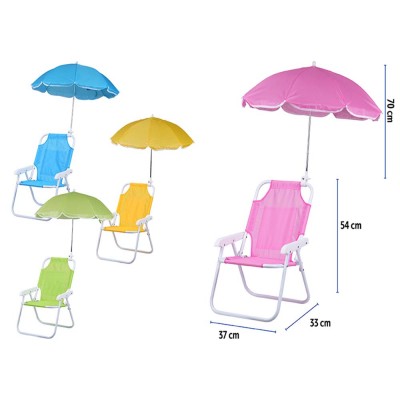 Il punto di forza di questo set mare bimbo è l'ombrellino parasole incluso, che si fissa saldamente alla struttura della sedia tramite un pratico morsetto regolabile, offrendo una zona d'ombra essenziale per proteggere i bambini durante le ore più calde. La sediolina è disponibile in quattro vivaci varianti di colore per accontentare ogni preferenza: Rosa, Azzurro, Verde brillante e Giallo solare. Le dimensioni sono studiate appositamente per i più piccoli: la sedia misura 37 cm di larghezza, 33 cm di profondità e 54 cm di altezza totale, mentre l'ombrello raggiunge un'altezza di 70 cm.