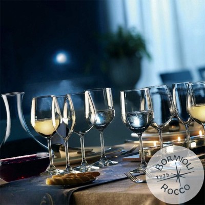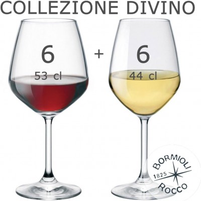 SET 12 CALICI DA VINO - Bormioli Rocco - Collezione DIVINO - Set di 12 calici da degustazione 6 per vini bianchi da 440 ml 6 x Vino Rosso 53 ml ciascuno - - Star Glass - La Collezione DiVino: una nuova serie di calici in Star Glass caratterizzati dalla innovativa uniformità dell'altezza e dalle forme piacevolmente squadrate. Il calice elegante ma versatile adatto alla degustazione, ma anche ad assaporare il piacere di un buon vino bianco sulla tavola quotidiana come in occasioni speciali. Imbattibile rapporto qualità/prezzo. In comodo set da 12 pezzi ad un prezzo irripetibile. -- Bormioli Rocco Professional - CALICI Linea DIVINO Questa linea di fascia alta di Bormioli Rocco è focalizzata sulla produzione di calici destinati alla degustazione professionale. Star glass - L'EVOLUZIONE DEL VETRO SONORO SUPERIORE - Il vetro sonoro superiore è stato portato ai massimi livelli di purezza e perfezione nella formulazione chimica. L'efficace ricerca e sviluppo è intervenuta sull'indice ri refrazione, generando una variazione che ha portato a netti miglioramenti in termini di neutralità del colore del vetro. - BRILLANTEZZA E TRASPARENZA - E' primo in brillantezza e vanta valori estetici paragonabili a quelli del cristallo uniti ad una maggiore leggerezza e praticità d'uso. La nuova formulazione consente la massima neutralità del vetro e l'assenza di sfumature di colore e impurità. - RESISTENZA AGLI URTI - E' primo in resistenza e si dimostra particolarmente resistente all'uso e ai lavaggi in lavastoviglie, anche industriali, mantenendo nel tempo le proprie caratteristiche estetiche. - RISPETTO DELL'AMBIENTE - E' primo nel rispetto per l'ambiente perchè l'assenza di piombo consente di realizzare un vetro perfettamente riciclabile, attento all'ambiente e al consumatore finale.