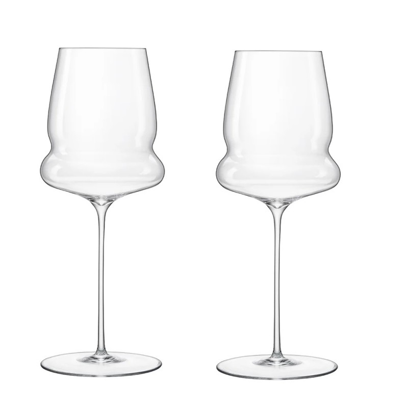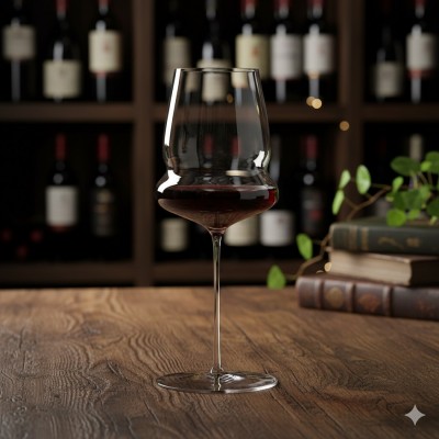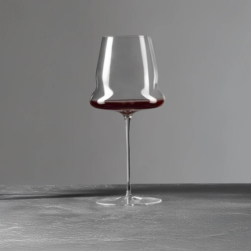 Il volume generoso della coppa garantisce un’ossigenazione ampia e controllata, esaltando la complessità aromatica e la struttura del vino.