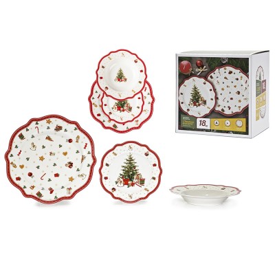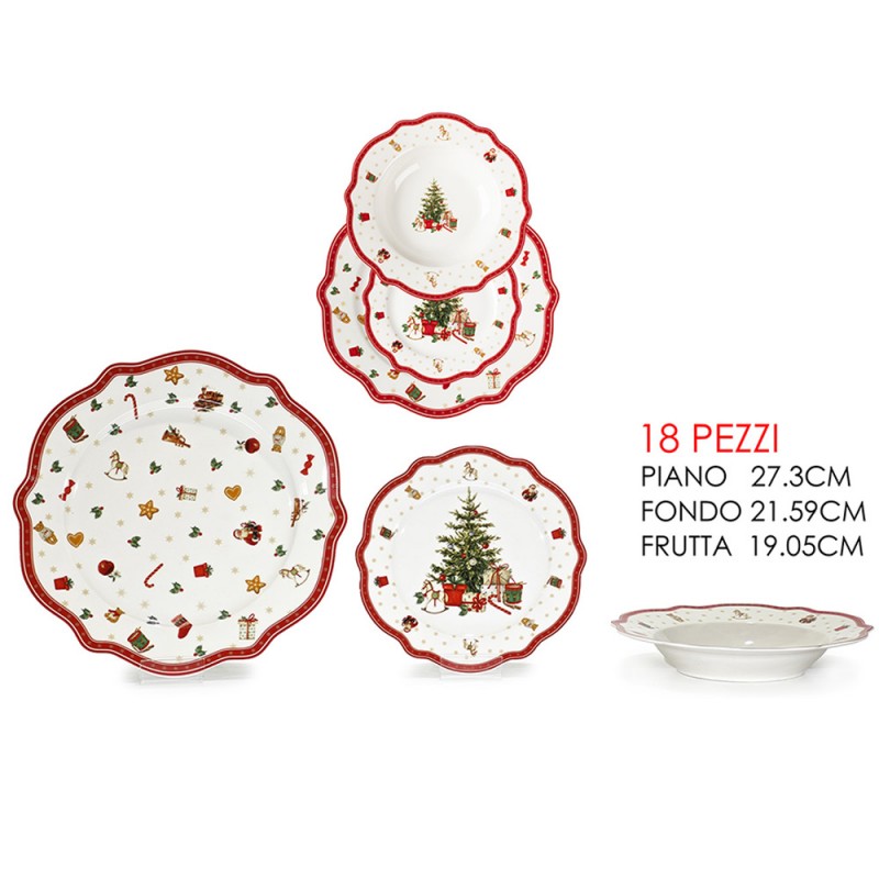 COSEDACASA Vi propone un elegante servizio di piatti natalizio da 18 pezzi in porcellana bordi smerlati di alta qualità, perfetto per allestire la vostra tavola durante le festività con stile e originalità. Il set è composto da: