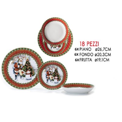 Servizio di piatti natalizi da 18 pezzi, composto da 6 piatti piani (cm 27), 6 piatti fondi (cm 21) e 6 piatti frutta (cm 19). Realizzati in porcellana di alta qualità, con un design elegante e decorazioni festive tra cui alberi di Natale e fiocchi di neve. Se ordinato entro le 13:00, spediremo lo stesso giorno con codice tracking del corriere e consegna entro 48 ore (se il corriere non ha intoppi).